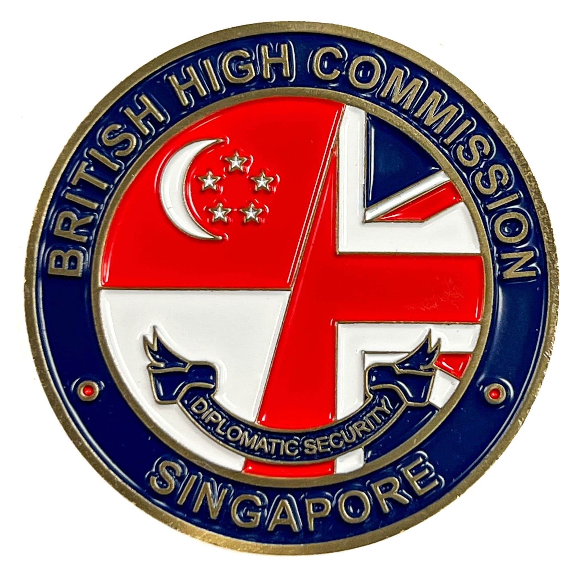 Our challenge coins are produced in solid metal with detailed enamel finishes and are designed for presentations, commemorative issues, anniversaries, and official recognition. Coins are manufactured to order and can be designed to match existing crests, insignia, or wall plaque designs, allowing for complete and consistent presentation sets.
