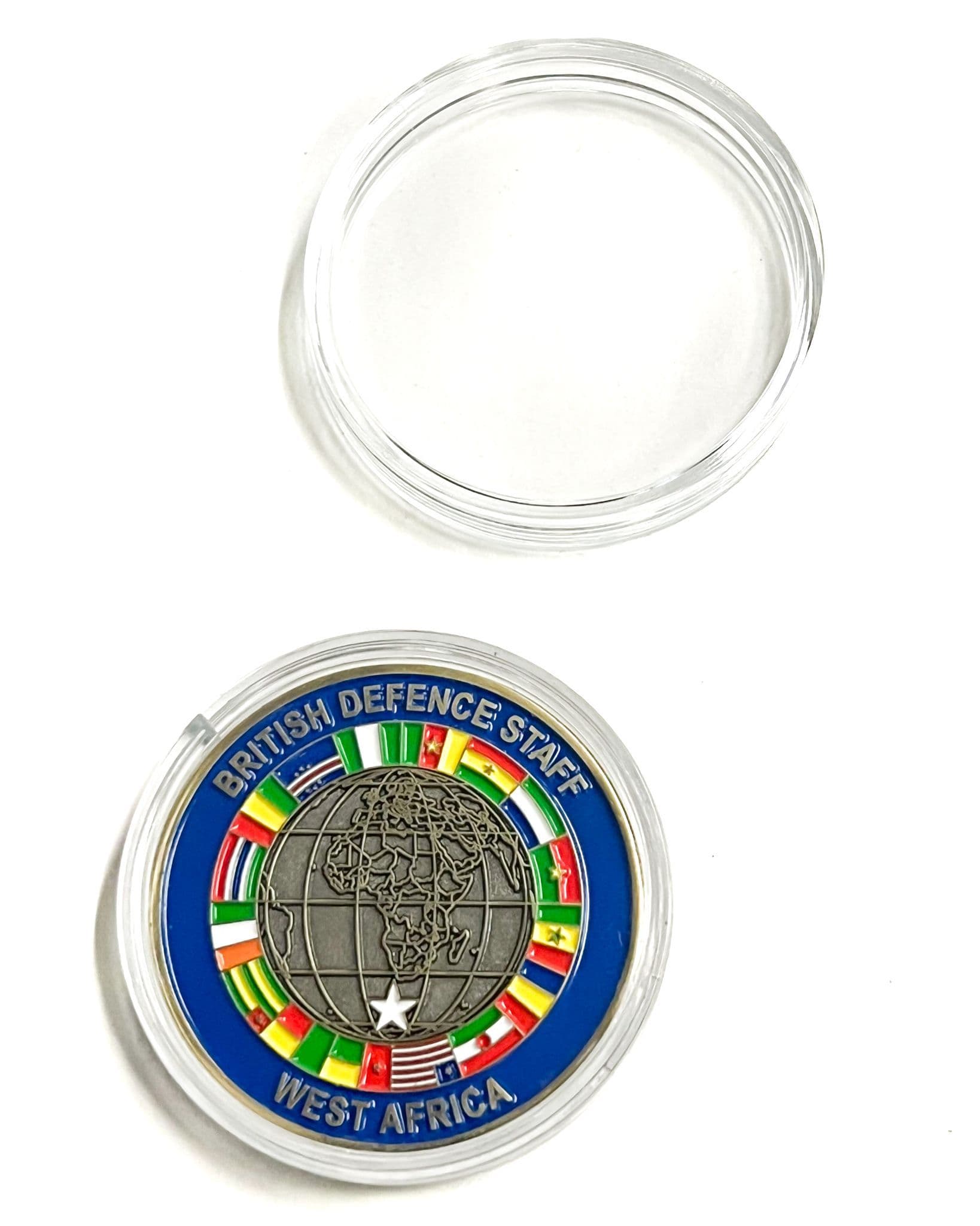 Each Challenge coin comes in its own hard plastic clear circular container.